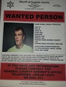 BESSEMER, Mich. – After a manhunt, the Gogebic County Sheriff’s Office is reporting escaped inmate Daniel Ferguson, 26, has been captured.