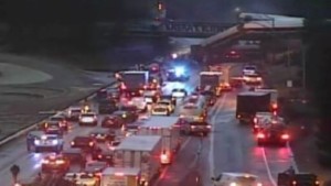The Pierce County Sheriff’s Office said several vehicles on Interstate 5 were struck by falling train cars and multiple motorists were injured. No fatalities of motorists were reported.