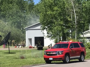 Five trucks were on the scene to put out the blaze. There were no hydrants near the garage, so they had to set up a water system with the city’s pumping station there.