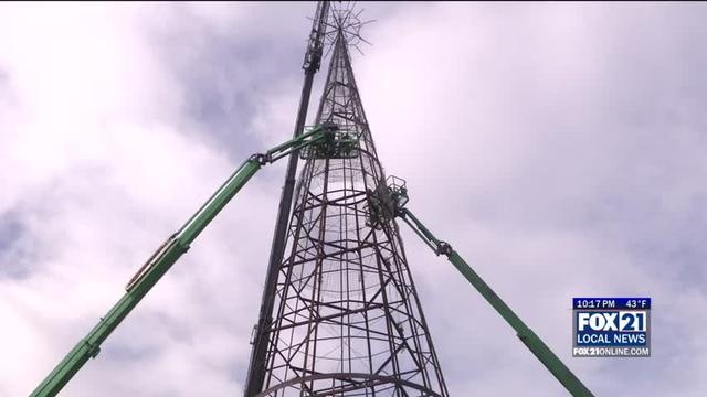 Crews work to build the iconic symbol of Bentleyville in Bayfront Park.