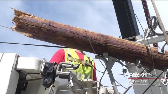 At least 200 poles and miles of power lines fell in the storm that swept through the Northland last week.