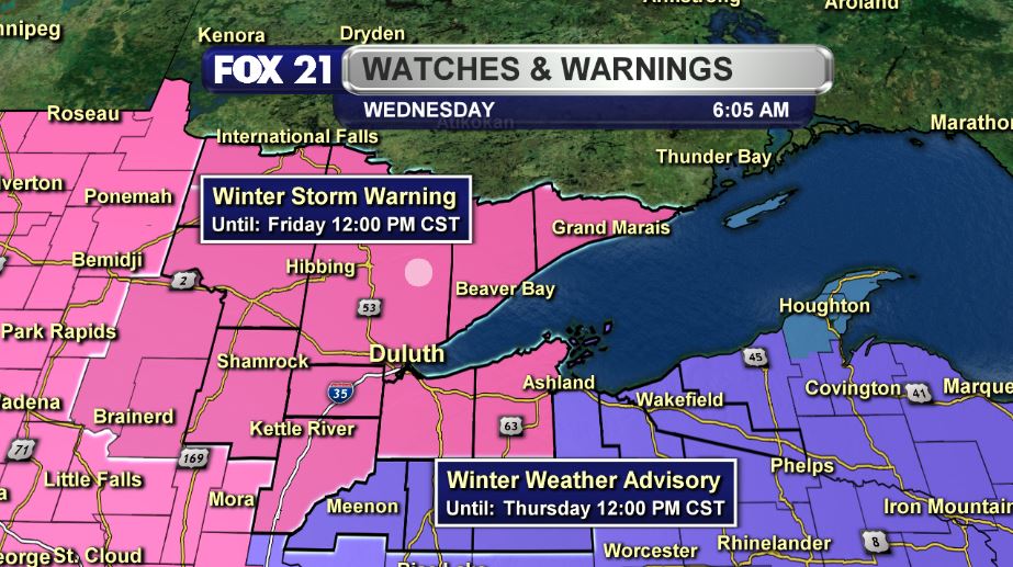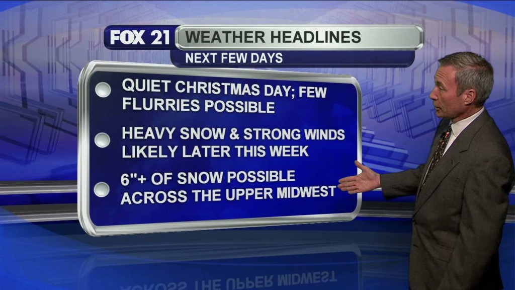 DULUTH, Minn. – A major winter storm is heading toward the Northland just as holiday travelers hit the roads. The much advertised event will bring significant snow accumulations to Minnesota and Northwest Wisconsin, along with some freezing rain and rain to parts of Wisconsin, downstate Minnesota and western upper Michigan. Road conditions will deteriorate from the southwest late Wednesday afternoon…