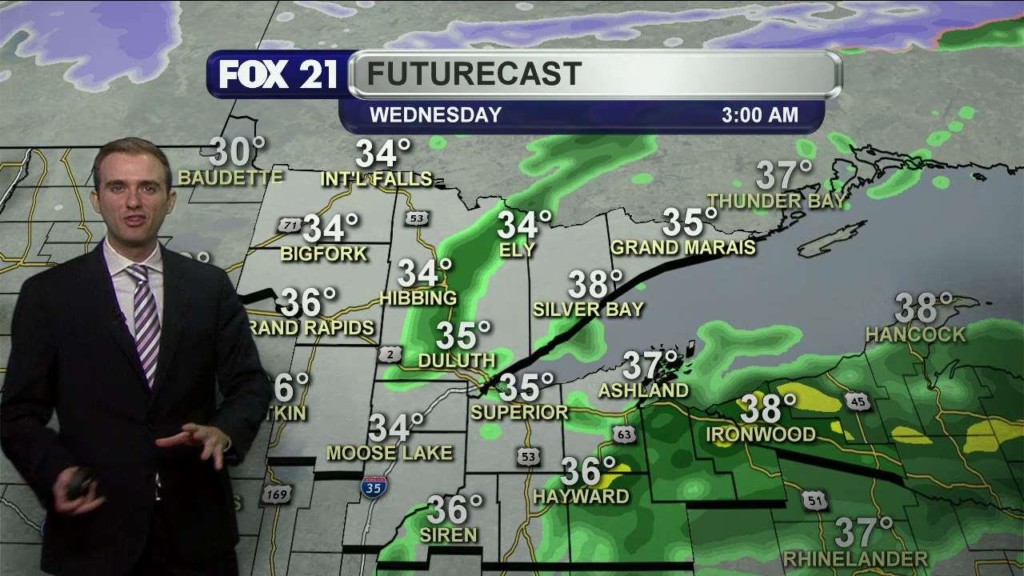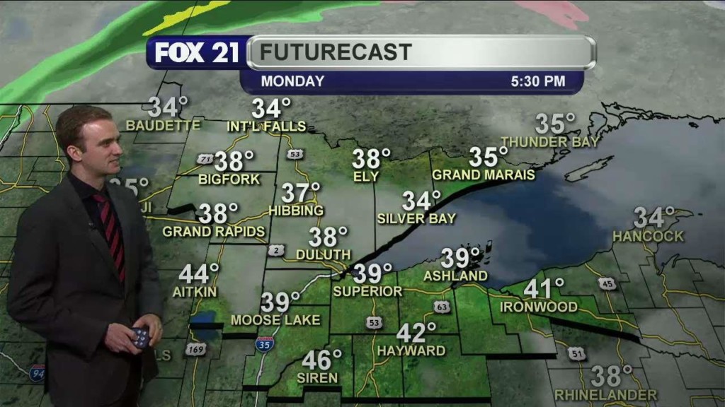 Cold air is settling into the Northland tonight. This will be the start of a long stretch of below average temperatures. As for tonight scattered rain showers will develop along and east of Highway 53. Winds will also begin to pick up out of the west and northwest at 15 to 20 mph. Rain showers will transition to rain and…