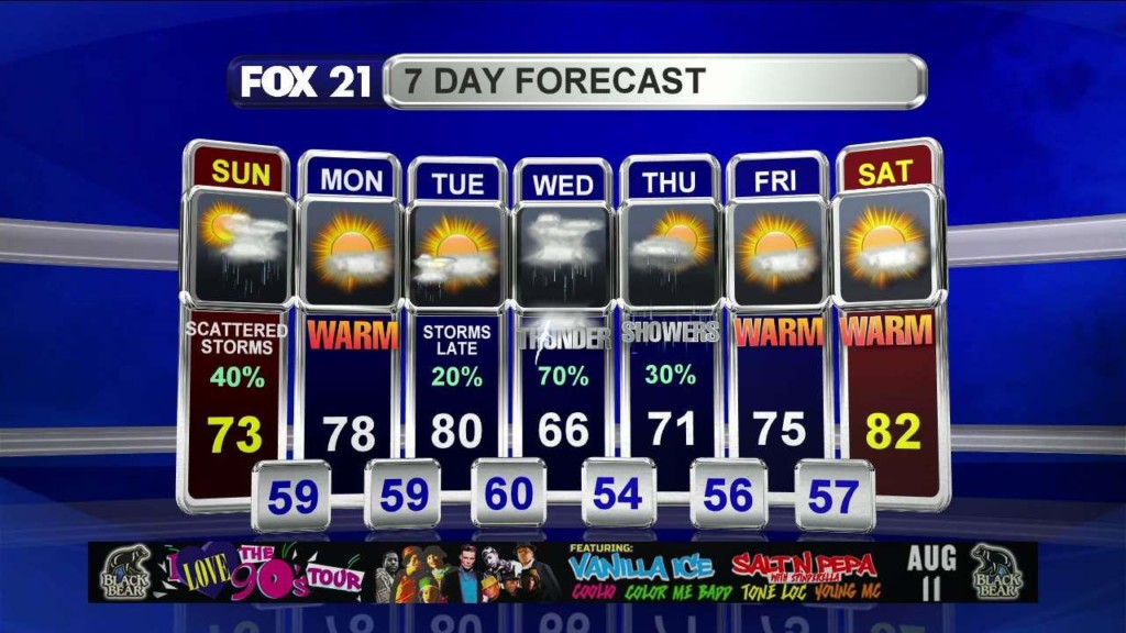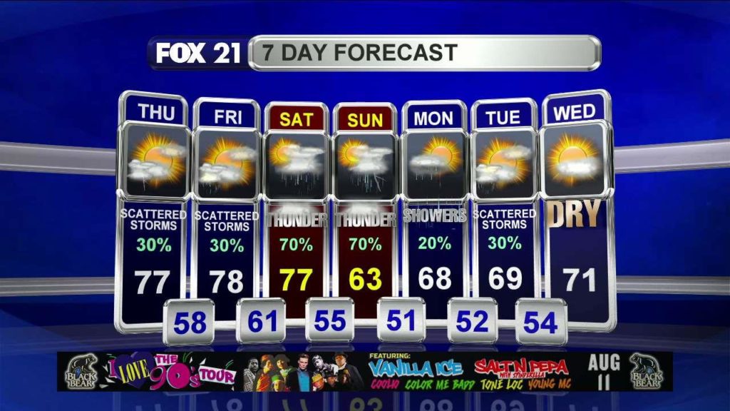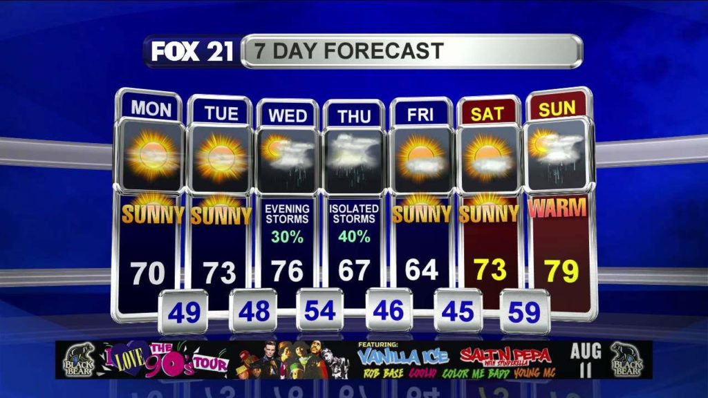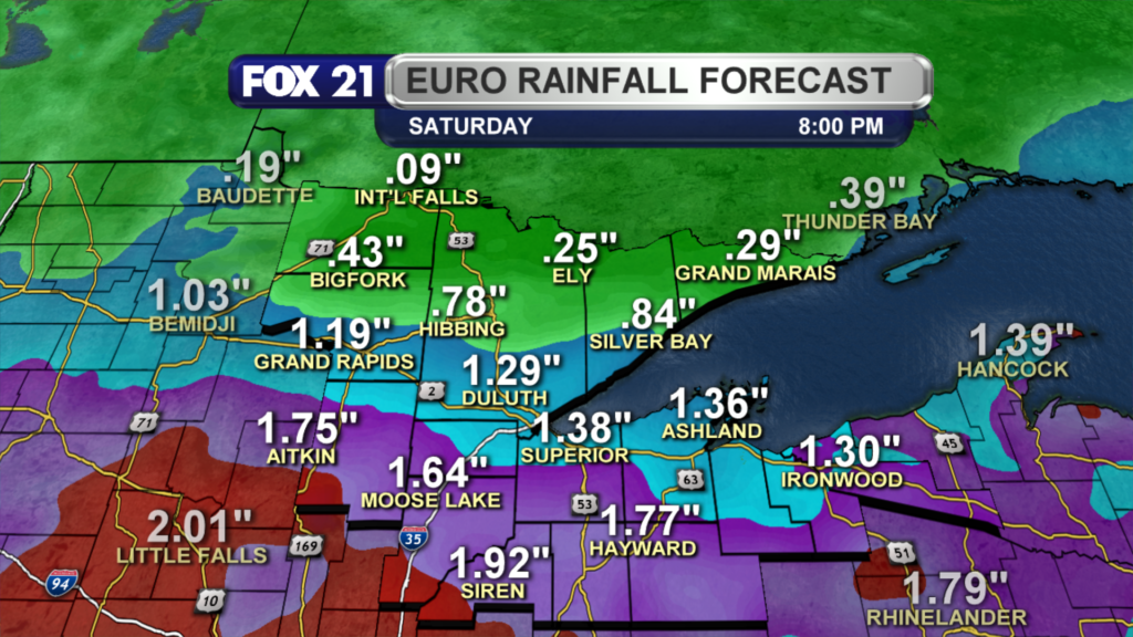 A strange and our of season storm system is currently expected to develop and produce some heavy rainfall over parts of the Northland. A center of high pressure positioned over Central Canada will begin the cool down process tomorrow with northeast winds. Lakeside areas will be in the 60s and farther inland, in the 70s. The Coldest air is yet…