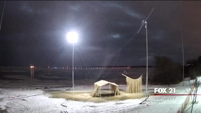 A portion of the ice sculpture being built in Superior has collapsed.