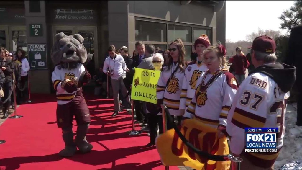 XCEL Energy Center, St. Paul, MN- While all eyes are on the ice watching the UMD men’s hockey team. Another team will be in the stands making sure all of the Bulldogs fans are pepped up for the big game. The UMD Pep Band has a chance to play in front of thousands of hockey fans in their home state….