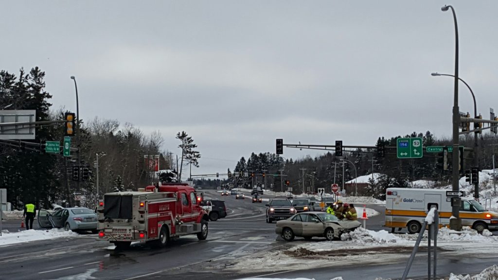 Two people were taken to the hospital following a two-car crash in Duluth Wednesday morning.