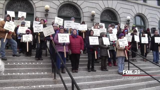 Members of the Justice City Coalition, and community members are outside of Superior’s City Hall in response to controversial remarks made by Mayor Bruce Hagen calling President Obama a Muslim.