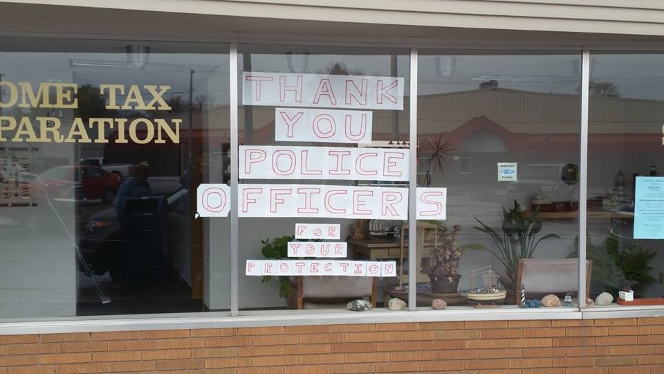 “Thank you, officers.” That’s the message prominently displayed on the windows of a business in Superior.