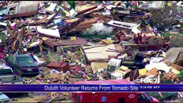 After two weeks of helping victims of the Illinois tornadoes, a Duluth Red Cross volunteer has returned home.