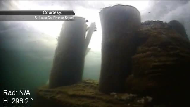 Underwater video from the St. Louis County Rescue Squad shows the historic fallen pillar near the Duluth “Cribs.”