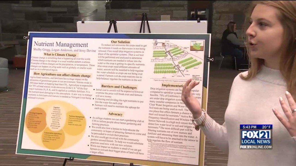 DULUTH, Minn. — Things are changing in the biology program at the College of Saint Scholastica. At this Environmental Showcase event, freshman students discuss science posters from research projects they’ve been working on this semester. Most of the projects on display are on various topics around climate change and sustainability. But the curriculum this year has changed. Rather than big…