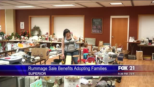 Two superior families getting ready to adopt newborns hosted a rummage sale Friday to help offset the high costs.