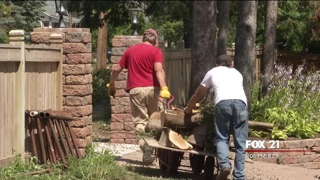 In Island Lake, community members are working to repair what the storm has damaged. Power poles were knocked down, houses were moved from their foundation and trees all around were knocked over.