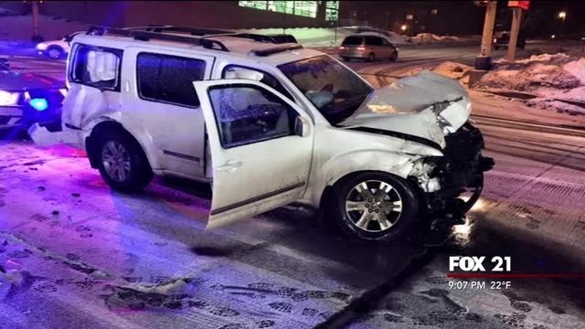 The Duluth Police Department says the driver of a smashed-up SUV was drunk when he went through a red light and struck a pick-up truck.