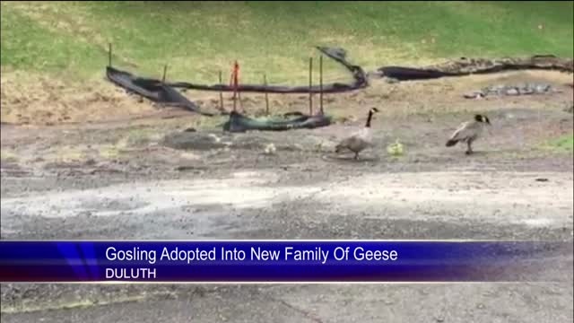 An orphan gosling found in a parking lot has been adopted into a new family of geese on the grounds of The Lake Superior Zoo.