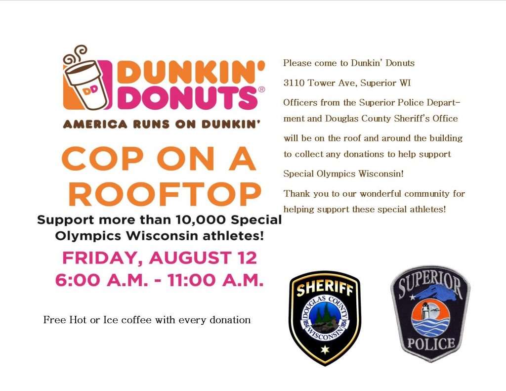 The Superior Police Department and Douglas County Sheriff’s Office will be supporting the more than 10,000 Special Olympics Wisconsin athletes.