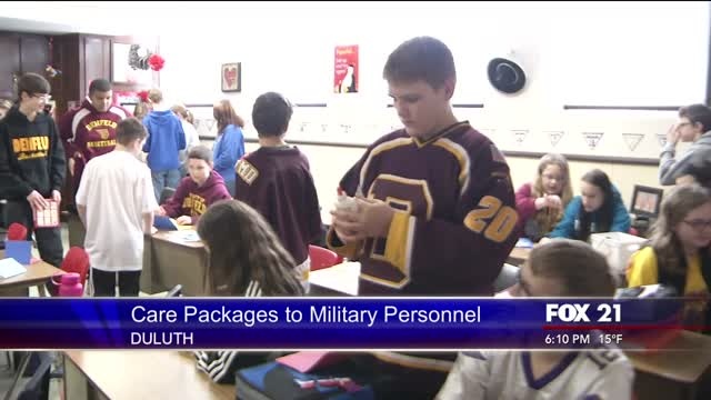 A service project for middle school students at St. James consists of sending care packages for a local troop overseas.