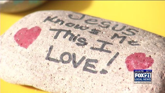 Aidan was a transgender youth who was bullied and eventually ended his life. One of his projects was to write positive messages on rocks and he would leave them around town. Friends and family will continue Aidan’s project in downtown Duluth.