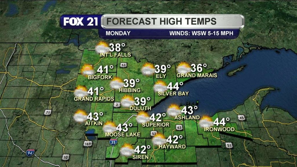 Mild again today, with partly cloudy skies. Highs in the 40s and 50s.