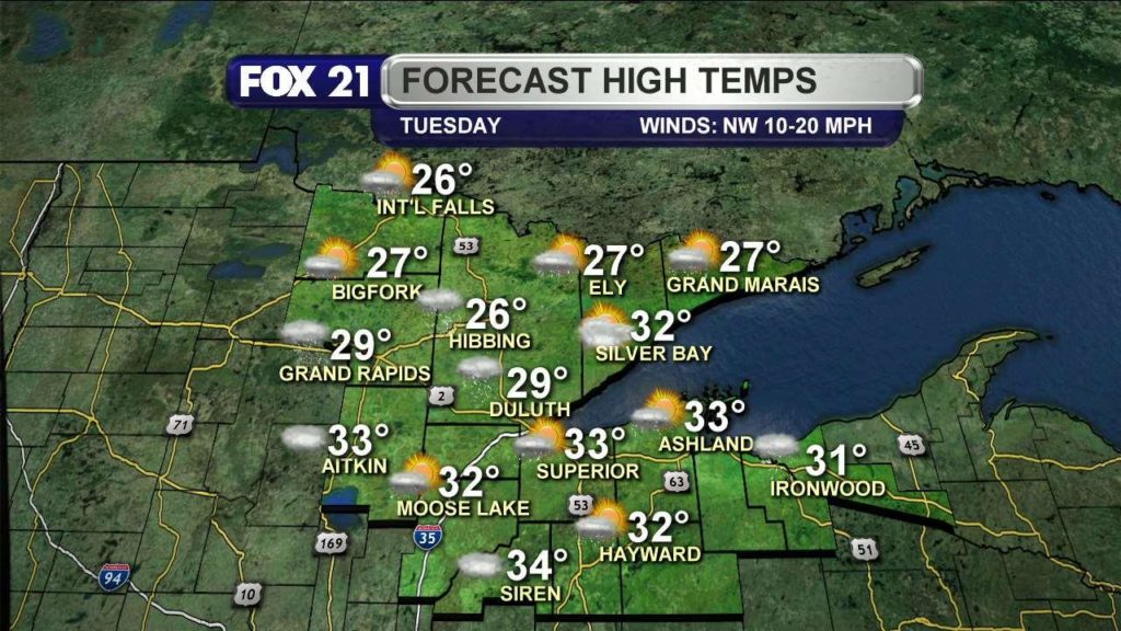 Today will be breezy and chilly, with mostly sunny skies and highs in the teens and 20s.