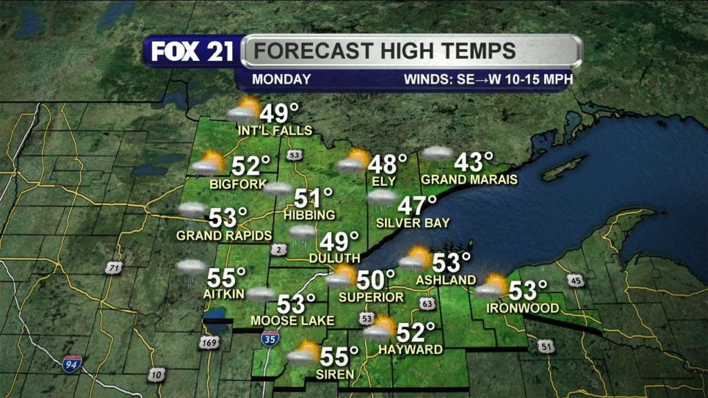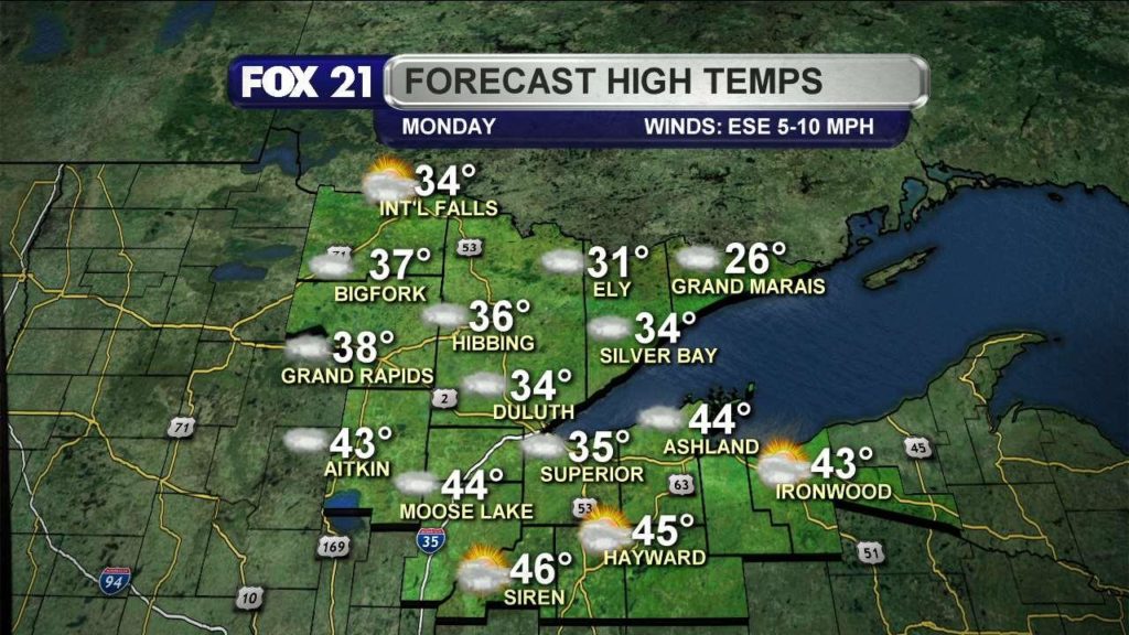Much warmer today, with highs in the 40s and 50s.