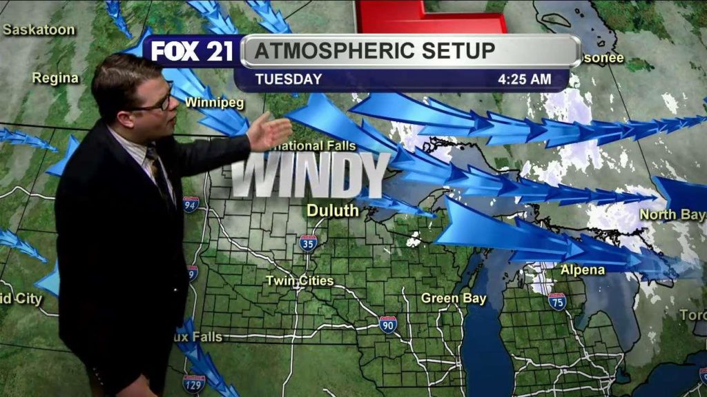 Light, blowing snow begins this day, which will be very very windy and a bit chilly as well.