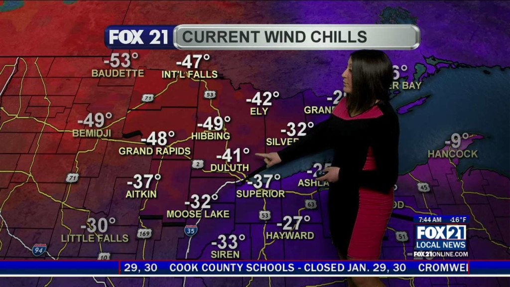 Categories: Weather Video Tags: Arctic Blast, brittney merlot, cold, cold spell, Dangerous Wind Chills, Duluth Minnesota Weather Forecast, fox 21 weather, Frigid Cold, merlot weather, merlots weather, Meteorologist Brittney Merlot, Northland Cold Weather, Northland Weather Forecast, Superior Wisconsin Weather Forecast, Twin Ports Weather Outlook, wind chill advisory
