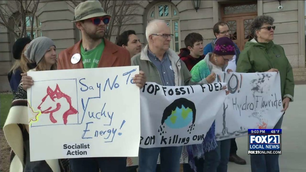 SUPERIOR, Wis.- On Saturday, protestors rallied outside the Douglas County Courthouse in Superior, voicing their concerns about the Husky Energy Refinery Rebuild. Recently, Husky announced they will continue using the controversial chemical Hydrogen fluoride after rebuilding the refinery which exploded a year ago. Protestors said it’s time to do away with the chemical, and the refinery, as a whole. “No…