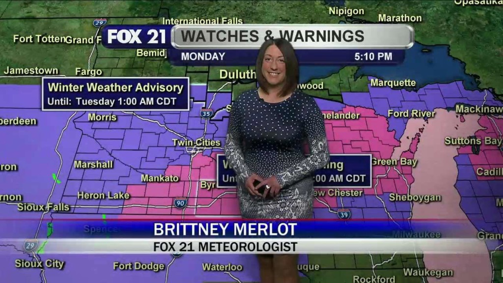 Categories: Weather Video Tags: Duluth Minnesota Weather Forecast, heavy snow, merlot weather, merlots weather, Meteorologist Brittney Merlot, Northland Weather Forecast, snow storm, Superior Wisconsin Weather Forecast, Twin Ports Weather Forecast, Winter Storm Warning, Winter Storm Watch